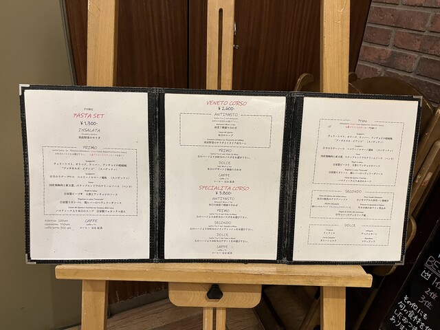 メニューを見てみると、ランチタイムは平日限定の「PASTA SET」が1,300円で、「VENETO CORSO」が2,600円に、「SPECIALITA CORSO」が3,800円と、3種類のランチコースが基本のようでした。