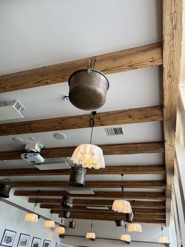 ワインバーを通り抜けて、やはり天井から鍋がぶら下がった店内に通されましが、こちらは店名に冠してある「オステリア」のような、落ち着いた雰囲気の庶民的な居酒屋風の造りになっていました。