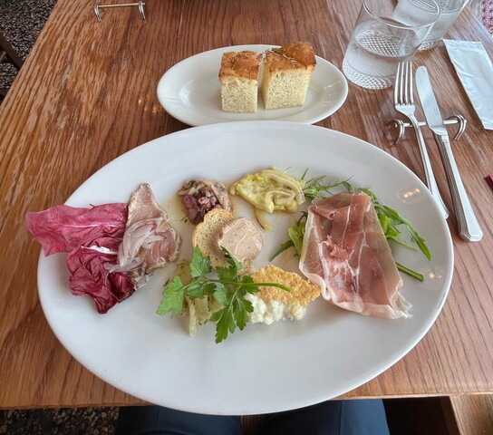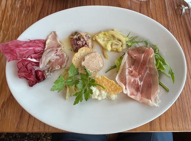 こちらの大皿には「生ハム」「魚のカルパッチョ」「レバーペーストのカナッペ」「ホタルイカの?」「豚耳ミミンガー」「〇〇〇???」「△▢✕????」が盛られていて、それも それぞれが結構なボリュームが有るので、シッカリ味わうことが出来ました。