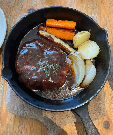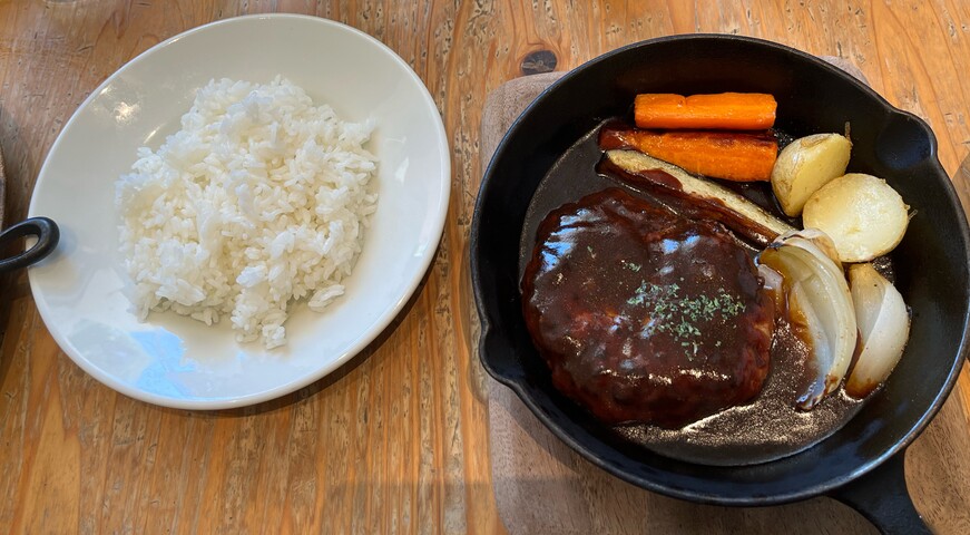ハンバーグ自体もかなり大きいですが、付け合わせの野菜も大きいのがゴロゴロ!