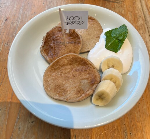 そして、〆の「バナナパンケーキ」が来ましたが、お味の方はともかくも、見てくれが余り良くないのでガッカリです⁈