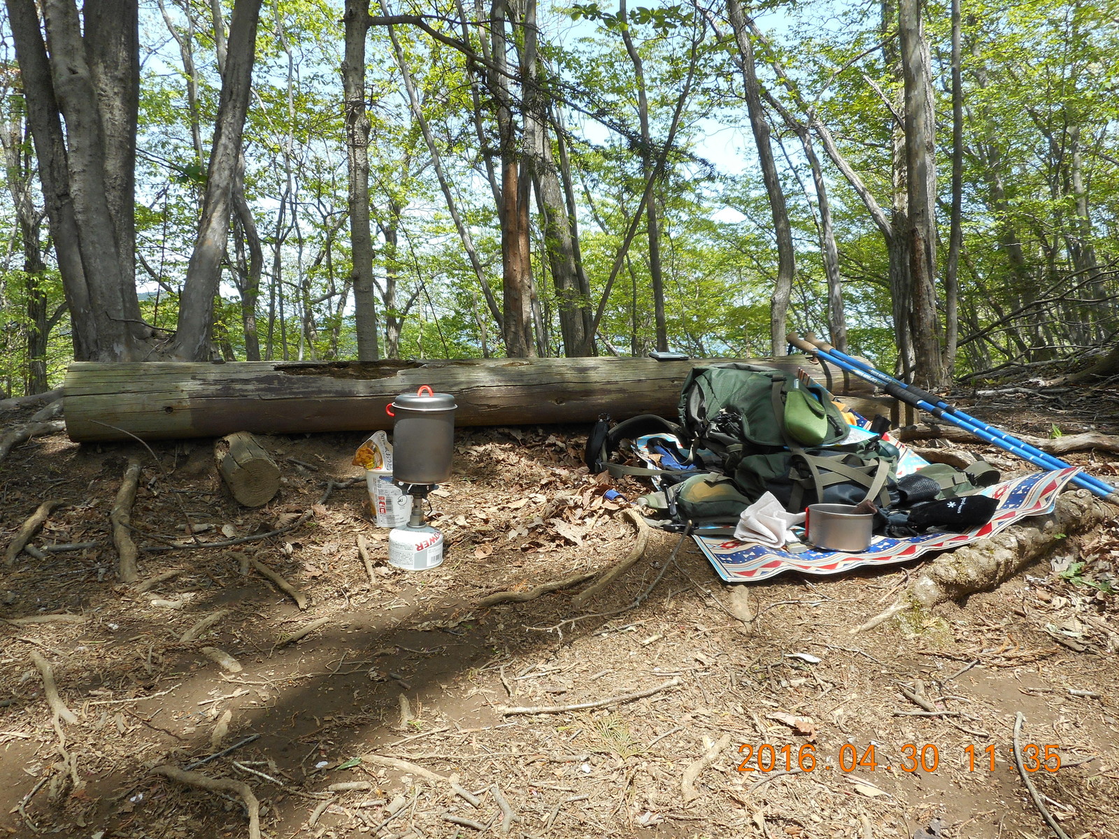 20分程下ると、丁度いい場所があったので、ちょっと早かったのですが、昼飯にしました。