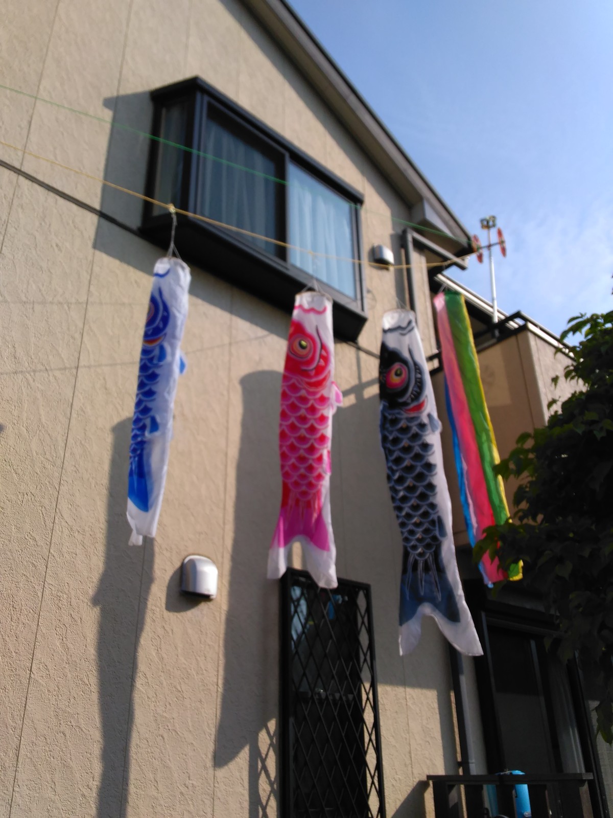 鯉のぼりは、上手に游ぐように、セットアップしました。